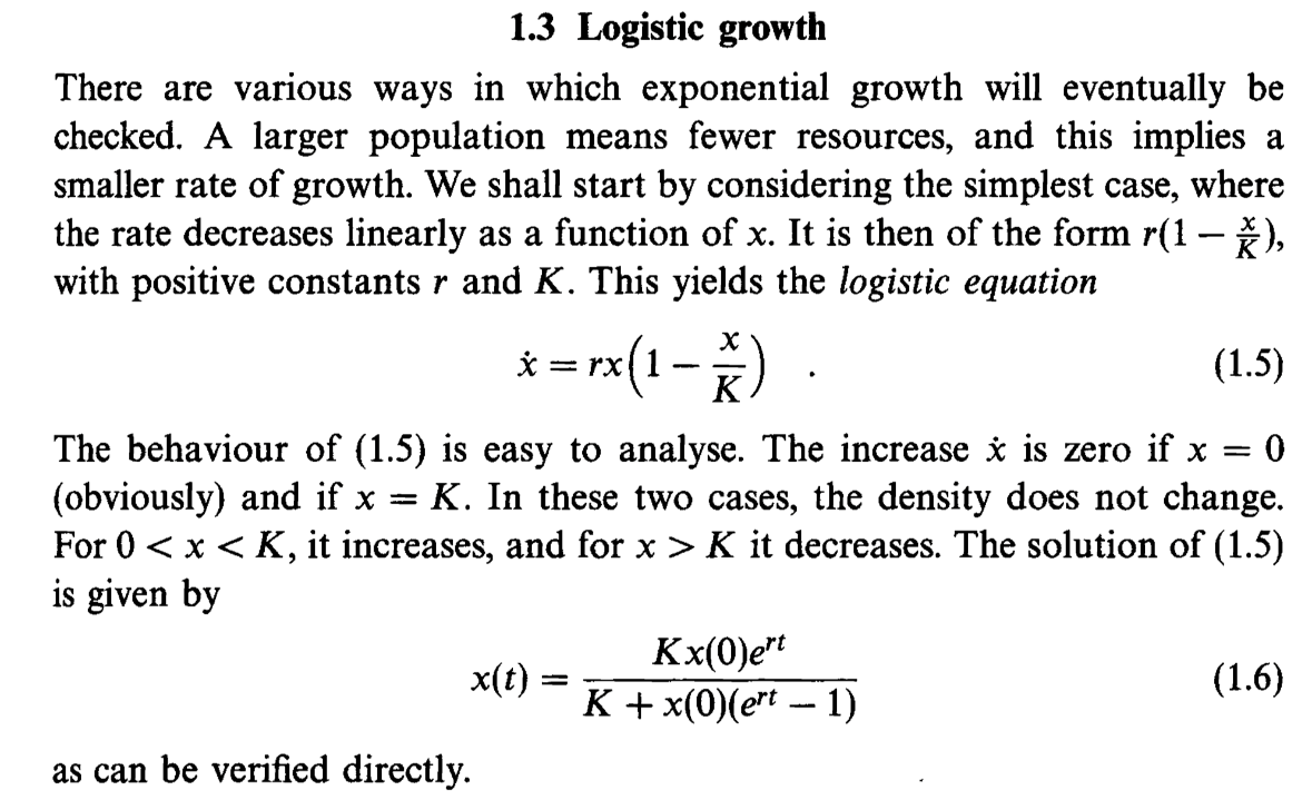 逻辑斯蒂曲线的连续时间数学表达,是一个微分方程,我抄录上世纪末在世界数学家北京大会做了一次1小时发言的维也纳大学数学教授西格蒙德的著作里的一页: