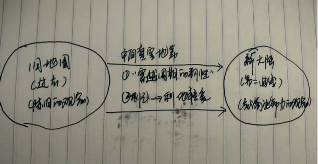凌晨四点我开始早读,就丁丁老师关于“人生遇到中年危机,企业寻找“第二曲线”,二者相类。”的授课内容,我提出了自己的观点,我的原话是:“这一点我理解:穿越生命周期的韧性——寻找第二曲线。不管企业和个人在其中包含着利己到利他的转变。”晚上处理完其他事宜,安静学习的过程中,丁丁老师在微信讨论群的这段话给我了我更全面的理解:“观念拓扑之为生命与创新的中介,理由是阿伦特提供的,我以前写过一篇文章或两篇文章,标题是“阿伦特为什么重要”。她是政治哲学家,她有一种同时代人无与伦比的能力,就是持续将新鲜的经验注入老旧的观念,从而激活这些观念,使它们从怀特海在《论教育之目的》开篇描述的“惰性观念”转化为“充满生命力的观念”。在这段话的深刻启发下,结合早上我提出的观点,又重新提炼出了“关于应对生命曲线的“拐点”找到第二增长曲线的路径,我把它命运为:沿着旧地图找到新大陆。下图附了我的手绘示意图。这个示意图有三个主要要素:旧地图、真空区域、新大陆。旧地图意味着过去,包括年龄、观念、知识体系、价值观、过去已取得成功;新大陆意味着未来、活力、创新、成功的其他机会、新的价值实践;真空区域是从旧地图迈向新大陆的这一转折期,意味着需要韧性、定力、长期主义、价值观的转变从利己到利他。这三个要素构成了一个应对“拐点”的路径。这一路径也符合“持续将新鲜的经验注入老旧的观念,从而激活这些观念,使它们从怀特海在《论教育之目的》开篇描述的“惰性观念”转化为“充满生命力的观念”的论述逻辑。示意图: