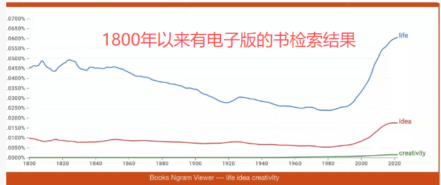 Idea 观念的出现在2000年左右,出现的频率超过了Creativity。
