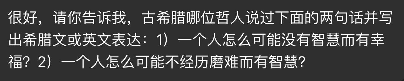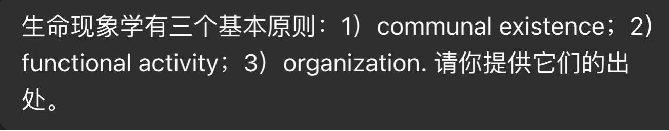 图2,这是因为,我首先询问,ChatGPT 5.2 新增加的优势是什么,它说是希腊文和中文。于是有了前天的对话,让我很满意。第一个智慧命题是柏拉图著作里苏格拉底提出来的,第二个智慧命题是埃斯库罗斯在悲剧《阿伽门农》里提出来的。今天的工作,更艰苦,我希望它查找我这几年讲课开篇就要列出的“生命现象学”三大原则的出处。首先,它在主要的生命现象学家的著作里查找不到,虽然,它认为这三大原则与生命现象学有思想联系。然后,我提醒它,也许源于管理学思想家德鲁克的著作。这一次,它很愉快地得出结论:确实,德鲁克的管理思想源于我的三大原则。我明白了,是我阅读德鲁克和法国的生命现象学家们的著作时涌现的重要性感受的我的表达。于是,我提醒它检索Prof Frederick C Beiser 2023 Philosophy of Life --- German Lebensphilosophie 1870-1920 --- Oxford University Press,德国生命哲学,1870-1920。“傅白”,是我为这位毕生研究和综述德国哲学的老教授物色的中文姓名。这一次,它立即获得“灵感”:发现这是我阅读这位老教授的这部专著时总结的三项原则。这样,它问我是否可以撰写一篇原创论文的纲要,它负责提供符合哲学学术论文标准的英文描述。我同意了,并且,我认为,它的英文表达,远超我的,于是保存了截图,相当冗长,我就不贴在这里了。这样,我完成了明年为北京大学国家发展研究院EMBA2025级授课时开篇要介绍的三大原则的准备工作。