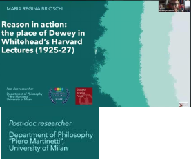 图6:马睿博2022年的演讲Maria Regina Brioschi 2022 Reason in Action --- The Place of Dewey in Whitehead’s Harvard Lectures,这是她2022年演讲的首页,注意页面左下方:博士后研究员。