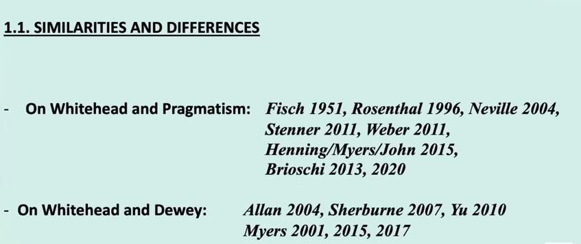 图7:马睿博2022年的演讲Maria Regina Brioschi 2022 Reason in Action --- The Place of Dewey in Whitehead’s Harvard Lectures,这里列出杜威与怀特海的思路之异同,很关键,它表达了马睿博女士的睿智与渊博。