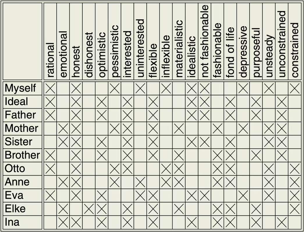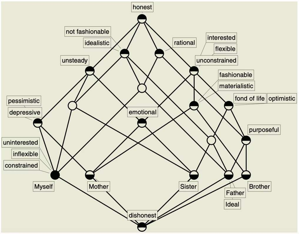 图6:Rudolf Wille and Bernhard Ganter eds 2005 Formal Concept Analysis --- Foundations and Applications 图6 一位心理障碍患者的家族成员的性格描述的语境,这是临床心理诊断的一种理论基础。