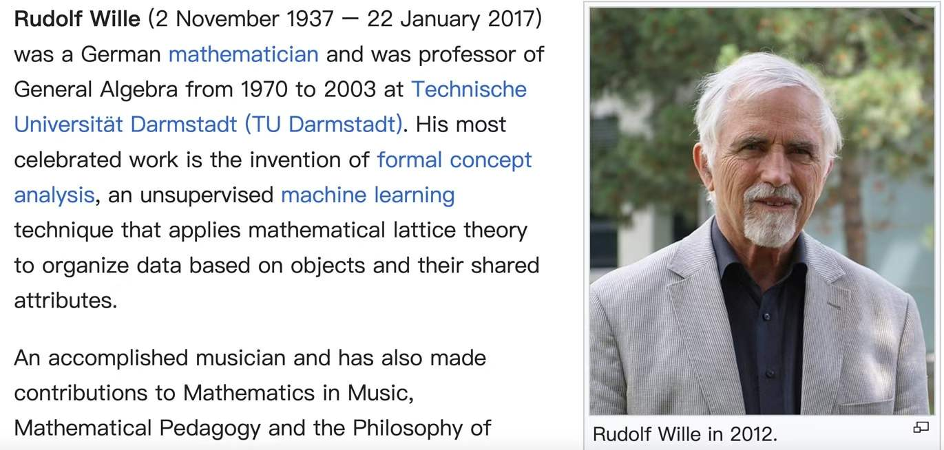 知识表达的理论基础,“正规概念分析”(FCA)的创始人,Rudolf Wille 也是德累斯顿技术大学的,数学家和计算机科学家和哲学家。可见不仅歌剧院著名,这里的技术大学也著名。