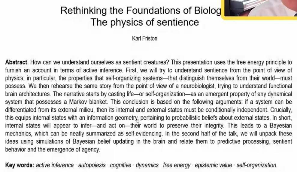 图3:Karl Friston Rethinking the Foundations of Biology --- the physics of sentience,这是他那篇论文的原文,“重新思考生物学的基础:感觉的物理学”。