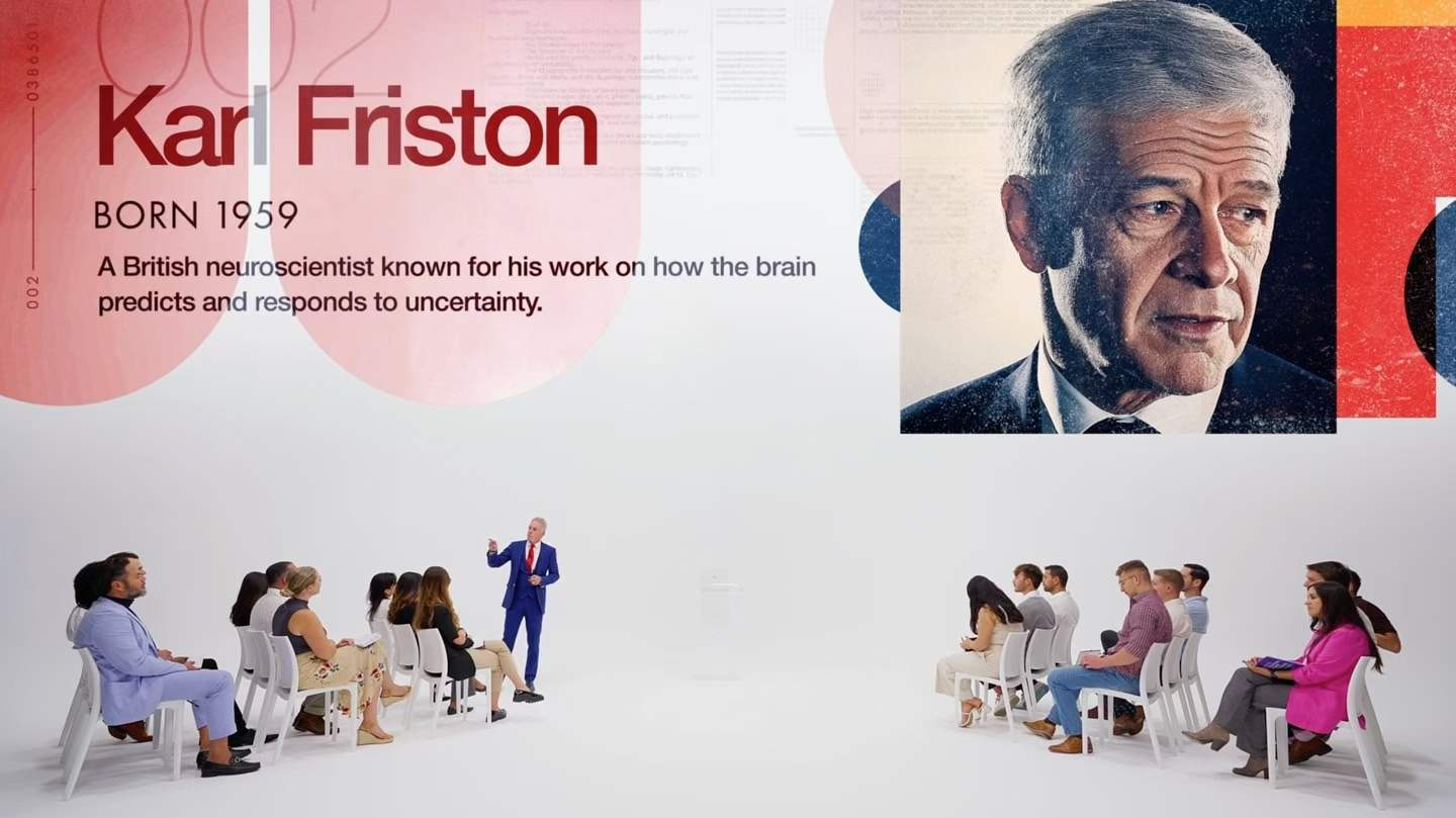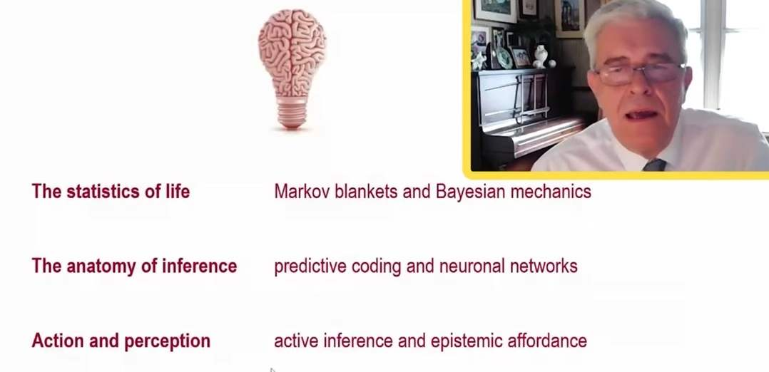 图1:Karl Friston 1959- as a British neuroscientist and theoretician particularly at University College London --- "Free Energy Principle" 2024 April-17 The Most INTENSE Theory of Reality,这是印度裔主持人2024年4月17日在英国皇家学会对弗利斯通的面对面访谈的视频,“自由能量原理”。Karl Friston 现在是英国皇家学会的明星,频繁出镜。他像是德国人,不过,他长期在英国的伦敦大学学院研究脑科学。他2009年以前的成果是核磁共振脑成像数据的处理方法,中国科学出版社有2010年影印版,