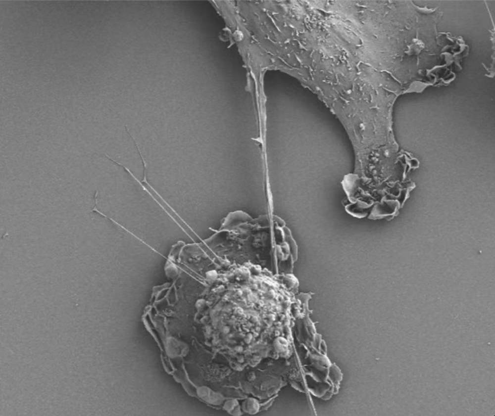 我摘录这本书的“引言”:……人们意识到线粒体在生命中的关键作用,以及了解线粒体的真实本质为何如此重要。达莉亚研究线粒体已有二十多年时间,她发现公众乃至医学界对线粒体的认知存在严重不足(正如这个案例所揭示的那样)。近年来,该领域的研究成果如雨后春笋般涌现,但这反而进一步加剧了知识上的鸿沟,留下了大量容易引起误解和传播错误信息的空间。作为研究神经退行性疾病及其他疾病中线粒体功能障碍的科学家,达莉亚每天都会遇到关于这一主题的种种误解。埃马努埃尔则是一名作家,当他开始对这些微小的细胞器产生兴趣后,亲身体会到了非专业人士很难真正理解线粒体在我们生命中所起的作用。这本书的插图也都是最新的发现,例如,图2,癌细胞会从前来攻击它们的免疫细胞(T细胞)中窃取线粒体。它们通过被称为纳米管的微小“导管”来实现这一过程,这些纳米管会延伸到T细胞附近。在这张电子显微镜图像中,癌细胞位于上方,T细胞位于下方。(图片由哈佛医学院的Shiladitya Sengupta提供)。根据两位作者的报道,晚近十年,医学界发表的关于线粒体DNA的论文数量超过了关于细胞核里的DNA(简称“核DNA”)的论述数量。可见,医学研究已处于“线粒体热潮”。生命不仅起源于线粒体,生命“健康衰老”的最终秘密也有待线粒体研究的突破性进展。这本书总共十一章,我在“译听”到第八章时,决定推荐。