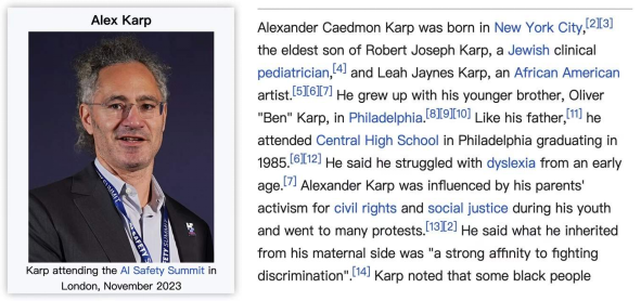 图2,Karp attending the AI Safety Summit in London, November 2023,这是他的近照,他出生于1967年10月2日。关键是,
