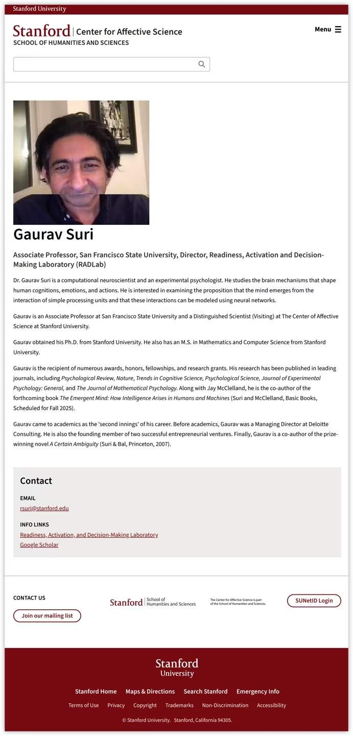 图5:Dr. Gaurav Suri is a computational neuroscientist ---Associate Professor, San Francisco State University, Director, Readiness, Activation and Decision-Making Laboratory,这是他的一连串头衔,也许没有比有更好。