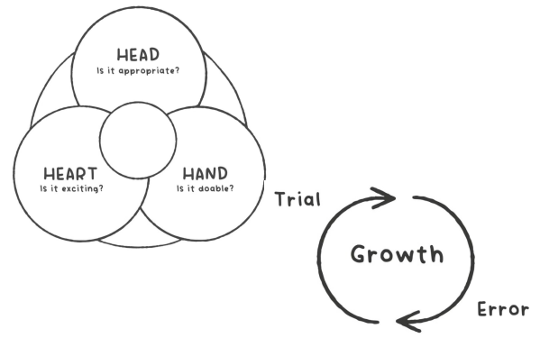 图5:实验主义者的人生,是“心智-情感-双手”的持续循环。每一次实验,心智询问:是否合适?情感询问:是否有趣?双手询问:能否完成?