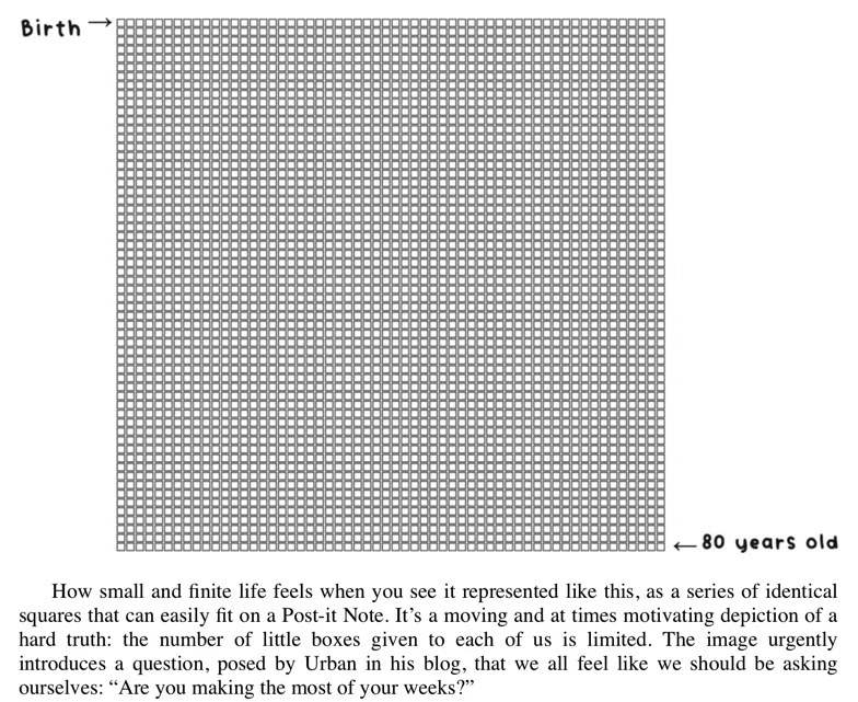 图4:当然,许多人不是这样虚度生命的,他们的人生犹如这些长短各异的矩形。也就是说,在“死床”上回放毕生经历,总会有几个星期,意义深远。