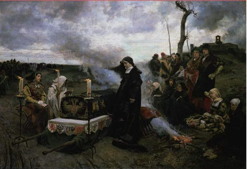 图1:“疯女胡安娜”,1877年,油画, 340厘米X500厘米,Francisco Pradilla,1848~1921,中野凉子《人性的暗影》,2014年,日文版插图。