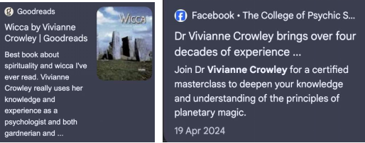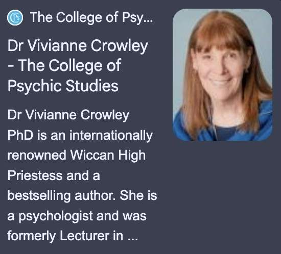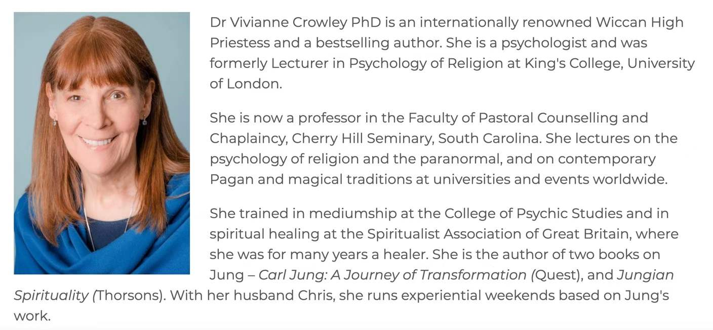 图5:She lectures on the psychology of religion and the paranormal, and on contemporary Pagan and magical traditions(她讲授宗教心理学与超心理学以及当代异教与魔法传统)。