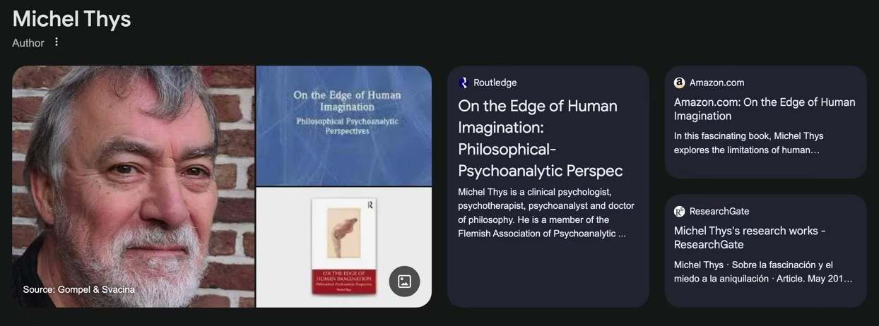 图3:Michel Thys a clinical psychologist, psychotherapist, psychoanalyst and doctor of philosophy(米歇尔·蒂斯是临床心理学家,心理治疗师,精神分析师与哲学博士)。注意,这里的“哲学博士”与我们这些博士的古老名称“哲学博士”不同,他确实是哲学系毕业的哲学博士。回到最新的“指南”,第八部分,就是“身份解离”。正宗的精神科学临床分类方法,首先是各种“神经发育障碍”,这是第一部分的内容,包括语言障碍、自闭症谱系、多动症和注意力缺失谱系,还有“特定学习障碍”。并且,这些谱系之所以列入临床手册,因为它们导致行为主体难以融入人类社会,广义而言,“社交困难”。所以,这一部分篇幅最大。其次,第二部分,“精神分裂症谱系以及其它精神质综合症”(我不喜欢微信读书在这里的译名“其它精神病性障碍”)。第三部分,“双相情感障碍”。第四部分,“抑郁症谱系”(这是我的翻译),这一部分的篇幅也长,因为有各种各样的抑郁症。第五部分,“焦虑症谱系”。由于显然的理由,这一部分的篇幅更长。第六部分,“强迫症谱系”。第七部分,“精神创伤”。第八部分,“解离性障碍”(这是微信读书的直译)。第九部分,“身体症状”。第十部分,“喂食与进食障碍”。第十一部分,“排泄障碍”。第十二部分,“睡眠-清醒”障碍。第十三部分,“性功能失调”。第十四部分,“性别焦虑”,特指一个人对于被社会认定的性别,感到烦躁或焦虑。在手册的更早版本或第5版更早的修订版里,被称为“性别认同障碍”。第十五部分,“破坏性障碍,冲动控制障碍和品行障碍”。第十六部分,“药物成瘾谱系”(这是我的翻译),这一部分相当冗长,理由显然。第十七部分,“神经认知障碍”。第十八部分,“人格障碍”,啊哈!因此,这一部分相当冗长。第十九部分,“变态性欲障碍”。这一类的行为,是一个广义谱系,所以,这一部分的篇幅,也相当冗长。最后,第二十部分,“有待进一步研究的临床病症”,例如,“嗅觉参照障碍”,还有,“强迫性性行为障碍”。