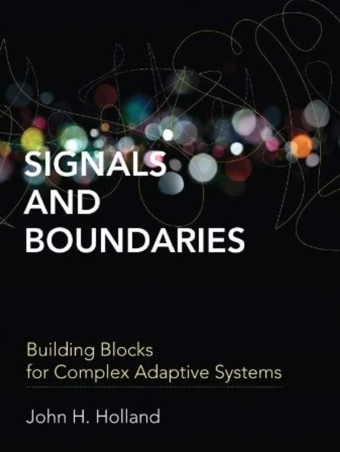 然而,我认为它迷失了自己的正确思路。我的表达,正确的思路是:生命几乎从原核细胞开始,就始终依赖于与生态环境的“交流”(认知)才可能“界定”它自己的生命过程。我认为,这才是霍兰德《信号与边界》的核心思想,图2,可惜,他生前的最后这本书,似乎仍没有中译本:John H Holland 2012 Signals and Boundaries --- Building Blocks for Complex Adaptive Systems --- The MIT Press,霍兰德,2012,《信号与边界:复杂适应系统的建构模块》,MIT出版社。