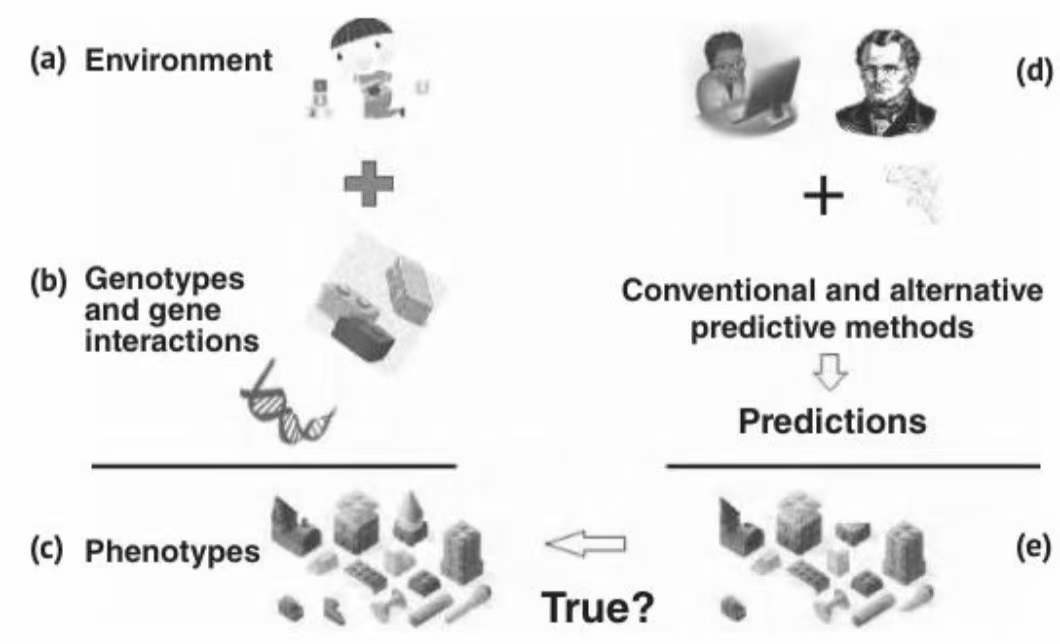 在我的观念拓扑理解框架内,每一个年轻人加盟一家企业,相当于这一年轻人进入了被称为“企业”的一个生态环境,他的人生问题,也就是他的生命能否在这一生态里获得“收益递增”这一问题,取决于他在这家企业提供的生态里能否找到自己的“niche”(将自己的一些属性与生态的一些属性结合为这一生态里以往没有出现过的龛位)。任何生命的收益递增阶段,总是创造性密集(建构新的生态龛位通常必须产生的天才时刻)的发展阶段。这样的生活,对行为主体而言,“意义”也最充实。不过,这只是这位年轻人的视角。在他加盟的这家企业的视角下,依旧必须满足从企业的“资源集”到企业的“愿景集”的“企业家想象”环节,和必须落实这一想象的,从“企业愿景”到这家企业的“产品集”的“创新映射”环节。否则,企业无法生存。这就意味着,这位年轻人为自己建构的“生态龛位”(niche)在形成他的生命的收益递增效应的同时,还应将自己的创造性融入企业的创新映射环节。因为,任何企业的生命力,最终,都依赖于它的“产品”(也是企业未来发展的“资源”)。龙湖集团也不例外,融入于产品的创造性(产品是“天才时刻”的载体)为客户带来足够好的体验,产品才可在市场里形成经济学教科书(我的讲义《收益递增》)描述的收益递增效益。企业才有超额利润,可能持续吸引更优秀的人才。这也是彼得·蒂尔在《从0到1》里论证的“垄断式创新”的合理性,没有超额利润,创新就难以持续。图1:环境与基因型相互作用产生表型 Predictive Methods for Genomics and Evolution --- Towards a New Analytical Biology 2026 Max Garzon, Luis F Garcia, Alexander Colorado《基因组学与演化的预测方法:走向一种新的分析生物学》。这本书对我和童乙伦目前的思路,至关重要。它是我以前在朋友圈推荐过的两本著作(《感性的细胞》与《基于认知的生命演化》)的思路,在生命科学基础研究领域里的扩展。这本书的前两章,冗长译文抄录,可概括为图1所示的两项要素:1)基因多效性,2)表型可塑性。由此发生了无限丰富的生命创造性。