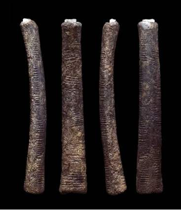 约18000年前的计数:Ishango Bone,c. 18,000 BC,The Math Book From Pythagoras to the 57th Dimension 2025 Clifford A Pickover《数学之书:从毕达哥拉斯到第57维度》。这块骨头在伊尚戈发现,靠近尼罗河源头,这里是旧石器时代早期大量居民的家园,火山爆发掩埋了该地区。骨头上的一列刻痕从三个刻痕开始,逐渐加倍为六个刻痕。四档加倍到八。十个刻痕,一半一半到五个。这可能暗示了对翻倍或减半的简单理解。更引人注目的是,其他列的数字都是奇数(9、11、13、17、19和21)。一列包含10到20之间的质数,每列数字的总和为60或48,均为12的倍数。可想而知,那时的智能生命,留下的一件“产品”,将创造这一产品的生命,几乎是无限地,延续到遥远的未来。