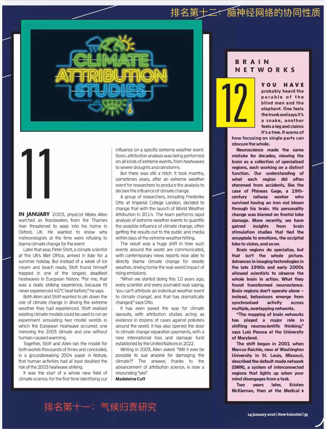 2026年1月24日的「新科学家」(我认为晚近十年远超「科学美国人」)发布的专号:21世纪第一个四分之一世纪结束时,评选20世纪最后四分之一世纪与刚结束的四分之一世纪,五十年间出现的21个最佳观念,顺便还发表了他们评选的5个“坏观念”。我稍加解释,“瞬态天文学”,诸如超新星爆发这类现象,在宇宙时间里是“瞬态”,研究这类现象,极大深化了人类对宇宙的理解。“神经多样性”,诸如从前被认为是“病态”且冠以临床诊断名称的,诸如“自闭症”或“注意力缺失症”这类现象,其实是脑的神经多态性,而非病态。排名十二的观念,其实是为曾是主流但随后被脑的局部功能效应观念取代了的脑的整体效应观念。我的见解是,越是演化稳定的脑区功能,可遗传性越强,局部功能效应也越显著,这是分工导致专业化的经济学原理,脑的演化,尤其遵循能耗最小化的经济学,让大语言模型望洋兴叹。
