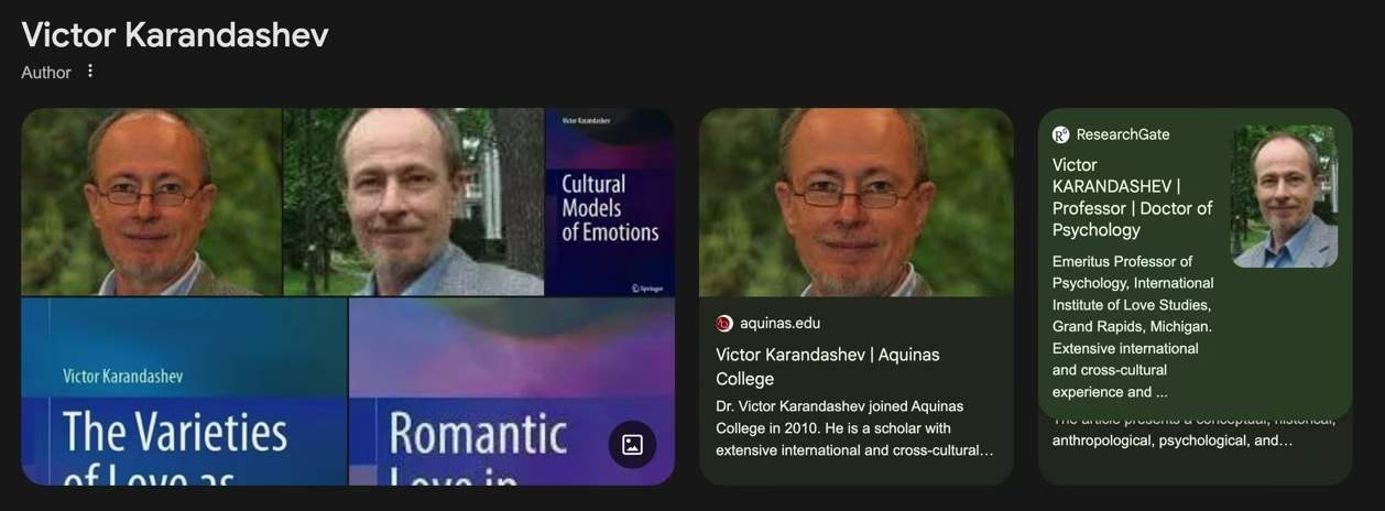 图2:Victor Karandashev 荣休教授,目前在密西根的大急流城“爱情研究”国际研究所任职。