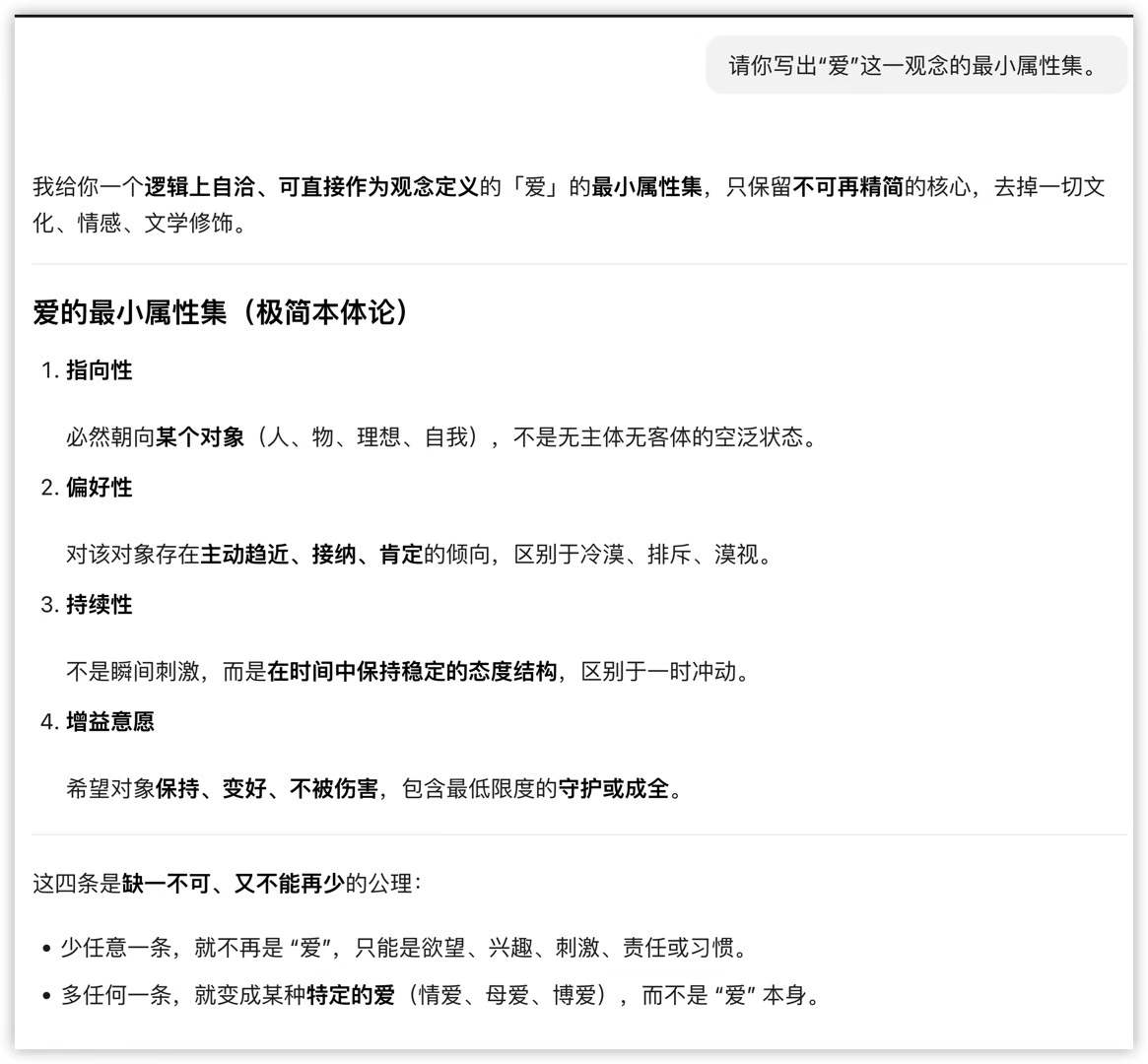 昨天豆包2.0上线了,我请它写出“爱”这一观念的最小属性集,