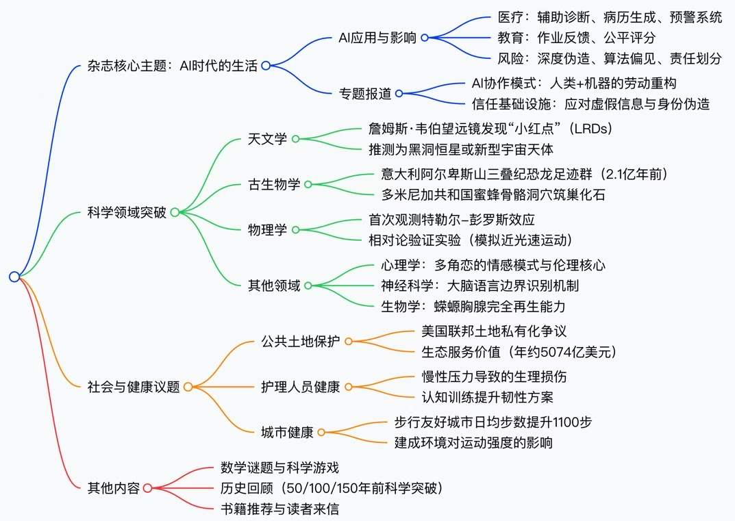 图1和图2:豆包阅读:2026 年 3 月《Scientific American》以 “AI 时代的生活” 为核心主题,聚焦人工智能的广泛应用与潜在风险,同时涵盖天文学、古生物学、物理学、心理学等多领域突破:包括詹姆斯・韦伯太空望远镜发现的 **“小红点” 天体 **、意大利阿尔卑斯山新发现的三叠纪恐龙足迹群、首次观测到的特勒尔 - 彭罗斯相对论效应、对多角恋的科学解读等,还涉及公共土地保护、护理人员健康、城市步行友好性等社会与健康议题,呈现了科技与自然、社会的多元交织。