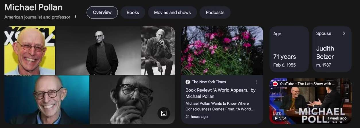 2月28日我推荐的那本书的作者,迈克尔·博兰,出生于1955年2月6日,年轻时赶上美国的迷幻药运动,那时的体验,对他最近五年采访意识研究领域的核心人物们,颇有助益,也是他在最新视频里提及的体验。