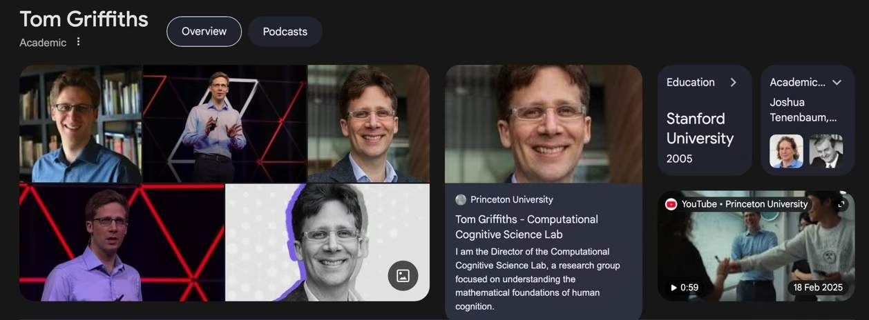 图2,约书亚·特南鲍姆指导的博士生,现在是普林斯顿大学,图3,计算认知科学教授 汤姆·格里菲斯(解海中在北大二代教育群的补充)。