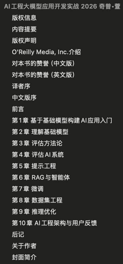 图2:AI工程大模型应用开发实战 2026 奇普•萱 目录。