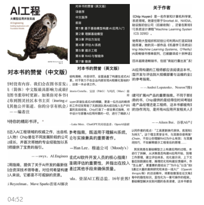 图4至图9:AI工程大模型应用开发实战 2026 奇普•萱 中译本的赞誉 等待精彩评论。
